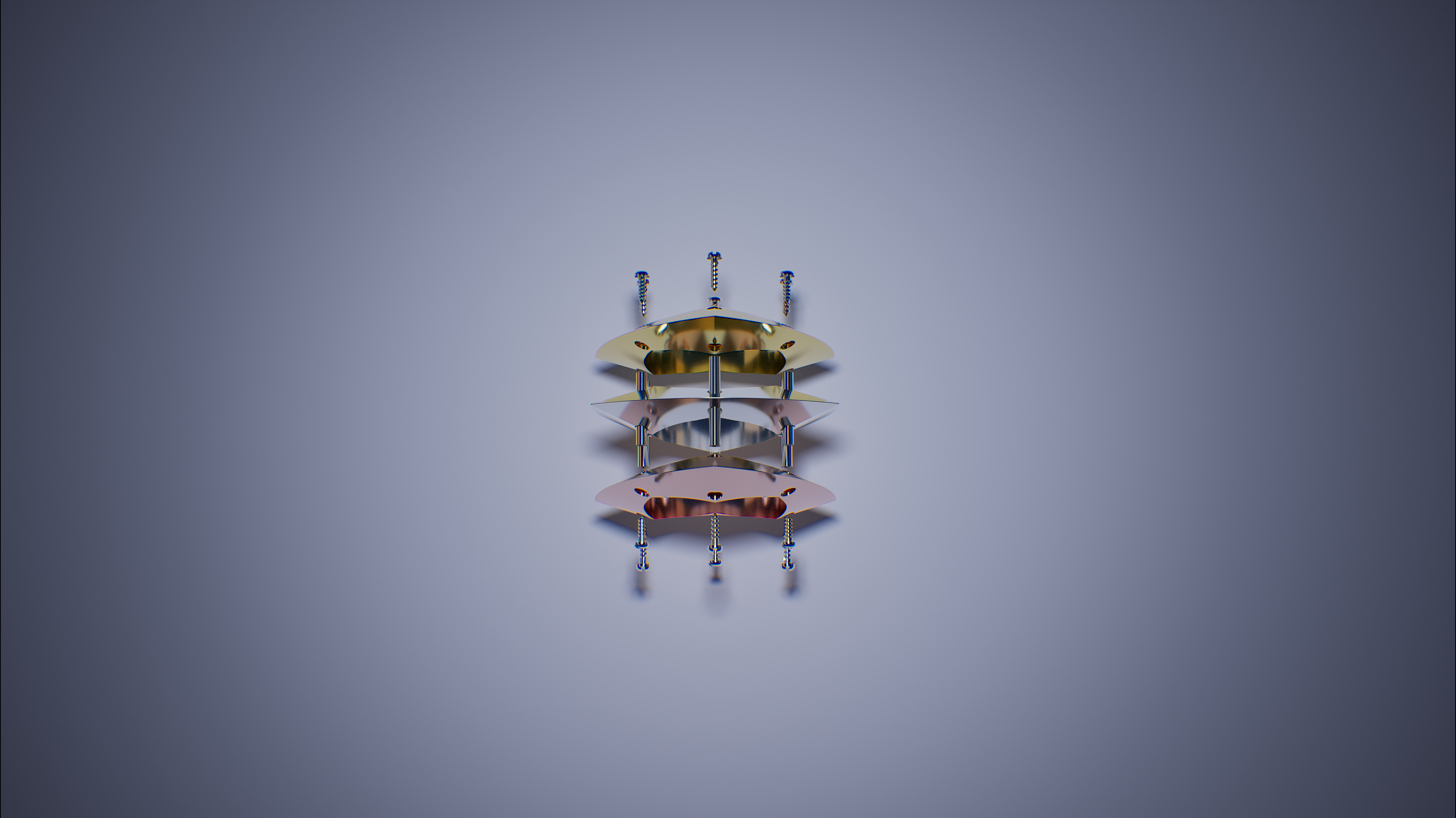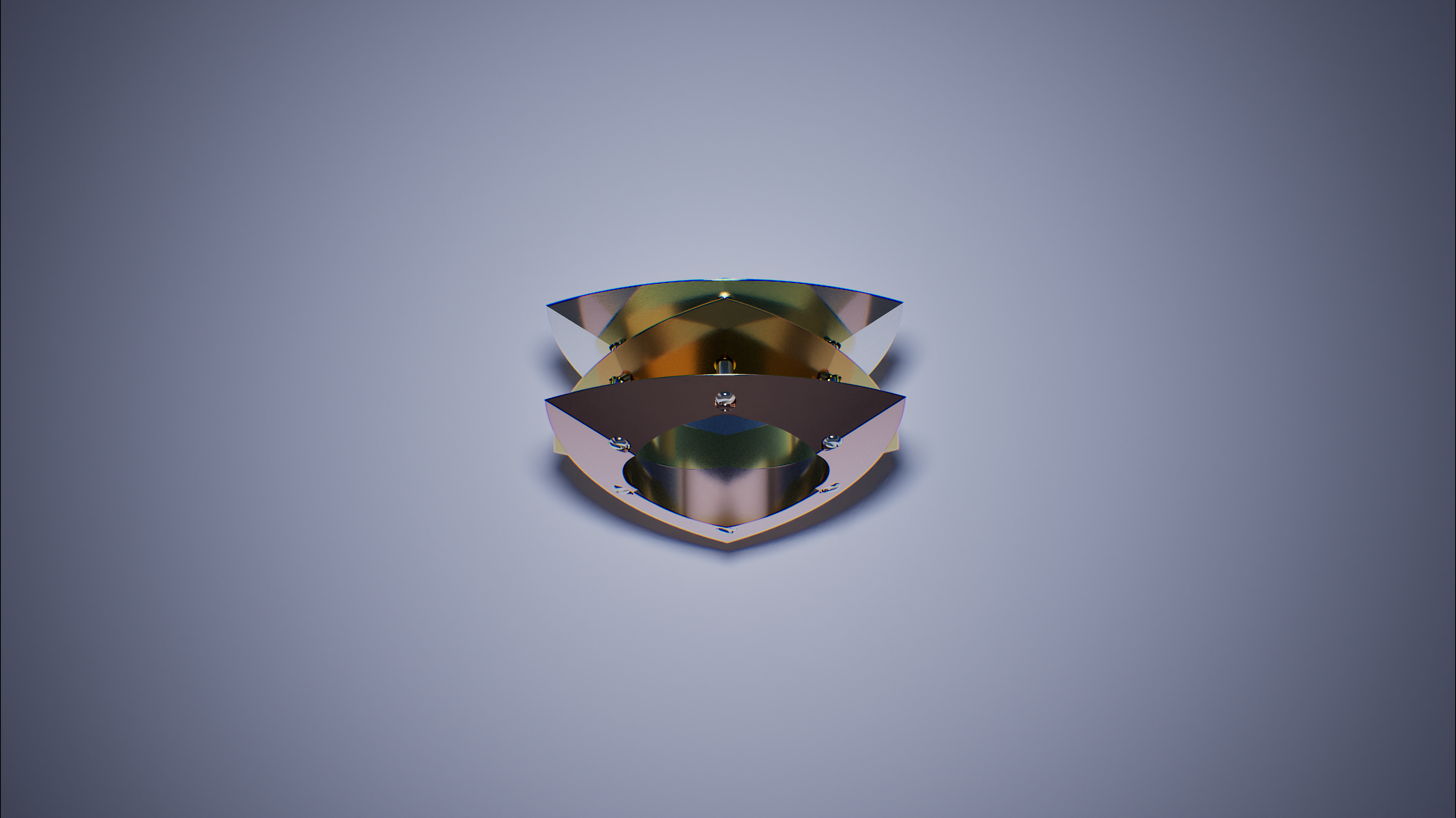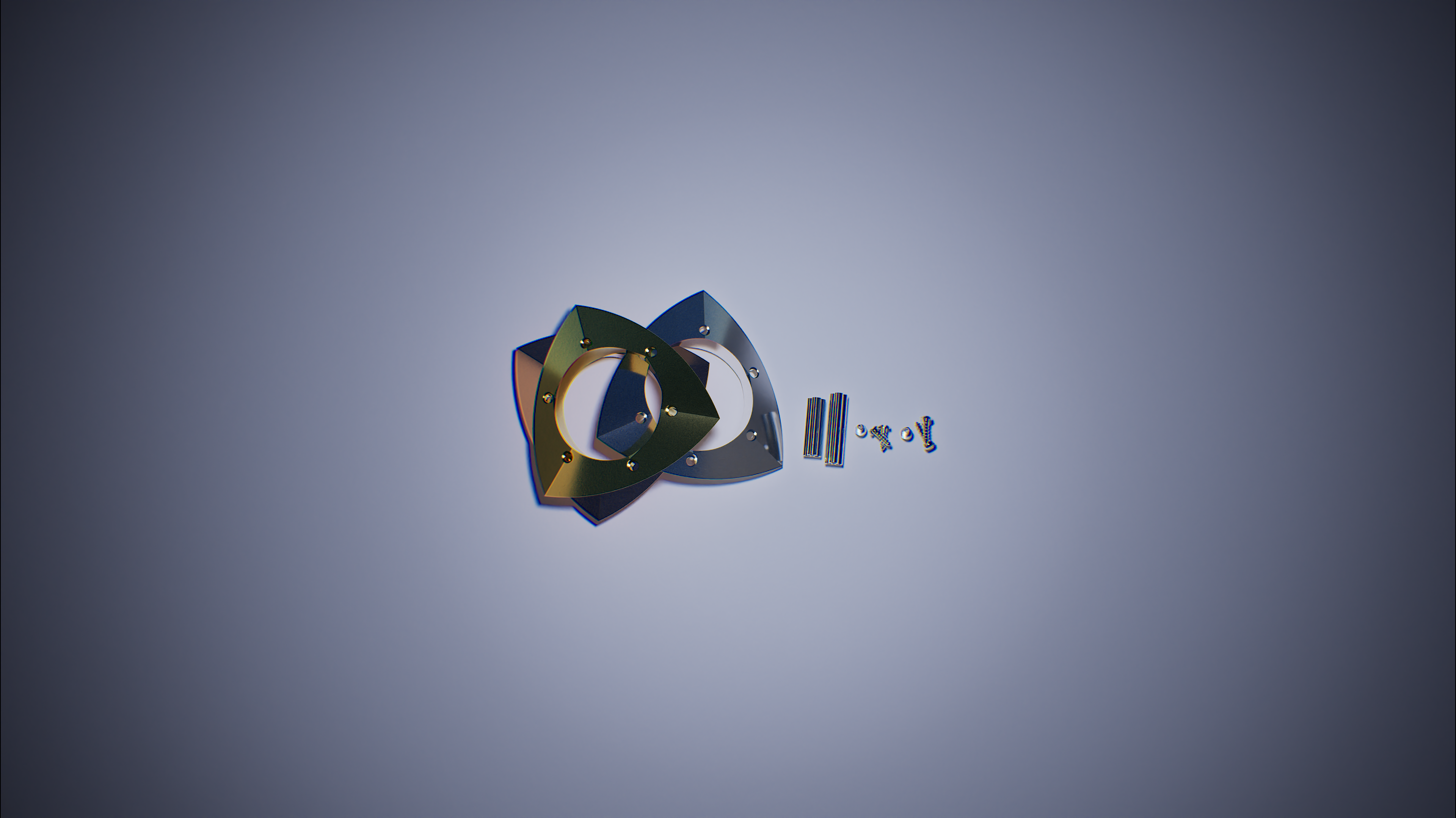 Ring modeled in Rhino 8, composed of three bands shaped as Reuleaux triangles. Each band is crafted in a different gold color red, yellow, and white creating a bold contrast in tones and surfaces. The assembly is secured by six screwed axes, allowing the structure to be disassembled and reconfigured. This modular design offers the wearer a customizable piece, blending engineering precision with sculptural elegance.